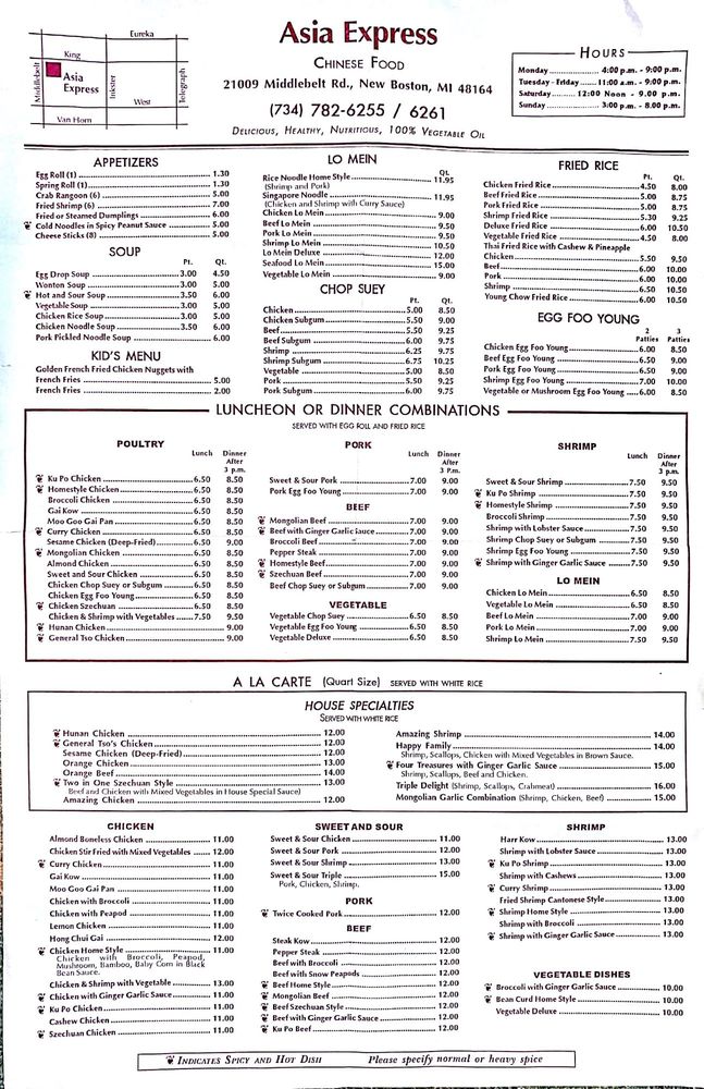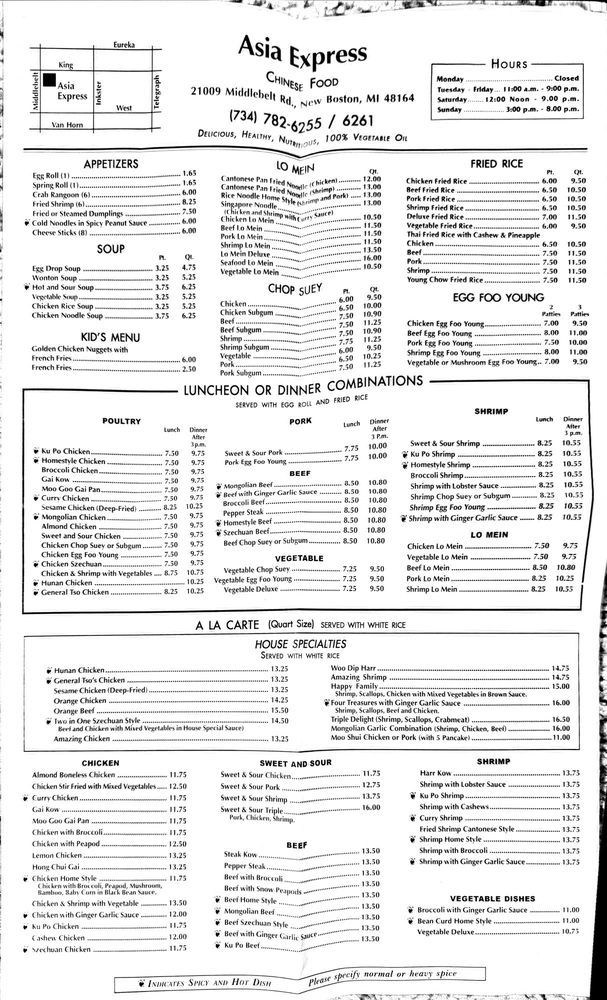 Introducing Asia Express, a delightful treasure trove for Chinese cuisine lovers, situated at 21009 Middlebelt Rd, New Boston, MI. This charming eatery, while appearing unassuming from the outside, consistently delivers on flavor and portion size, earning rave reviews from patrons.